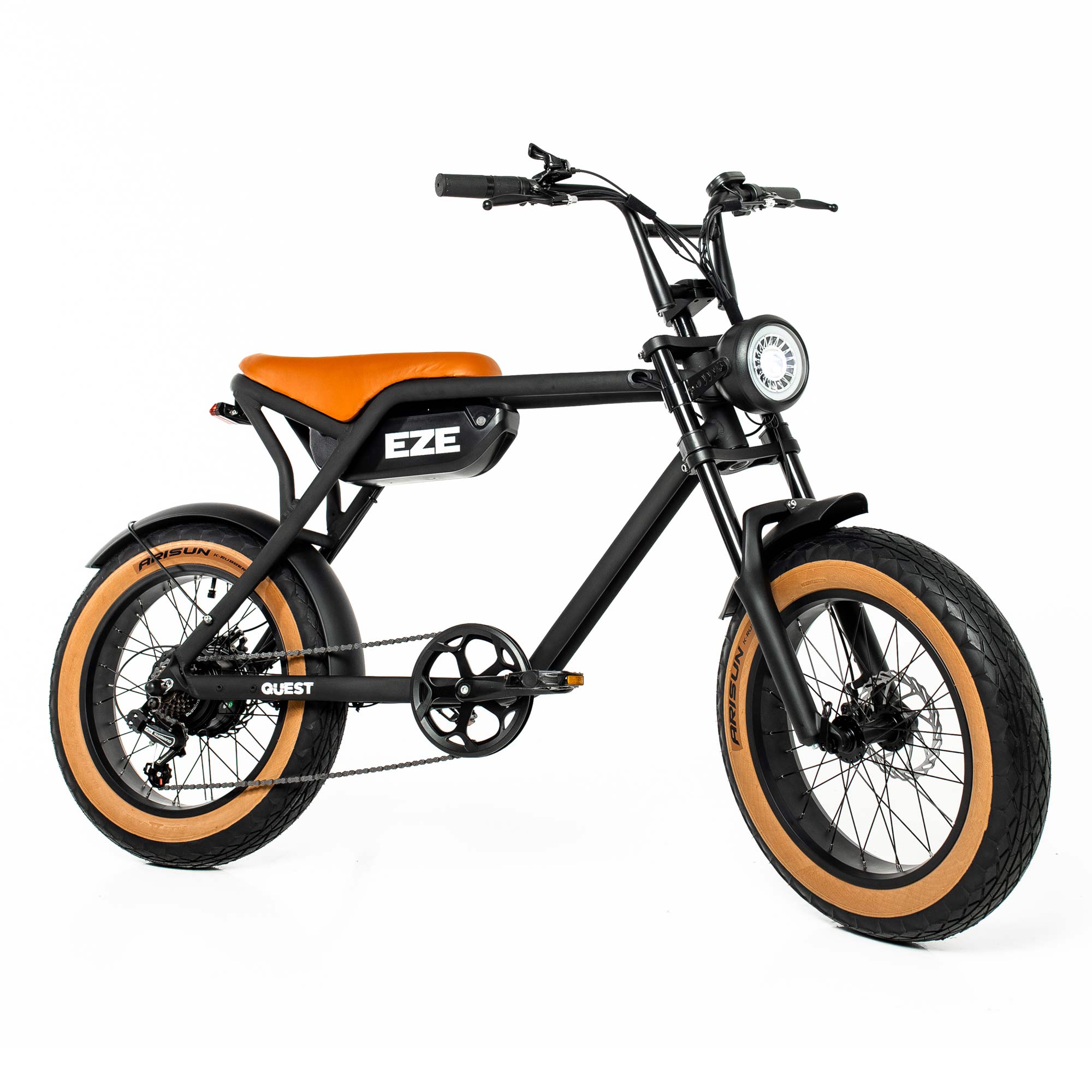 *Imagens meramente ilustrativas. Especificações e design sujeitos a alterações sem aviso prévio. Bicicleta elétrica EZE QUEST As pessoas estão buscando cada vez mais alternativas para fugir dos grandes congestionamentos no trânsito, e a bicicleta elétrica tem se destacado como uma das principais opções para a mobilidade urbana no dia a dia. Com cerca de 70 milhões de bicicletas elétricas e convencionais rodando pelo país, segundo a Abraciclo (Associação Brasileira dos Fabricantes de Motocicletas, Ciclomotores, Motonetas, Bicicletas e Similares), a bike elétrica é portátil, sustentável e muito versátil. Com seu estilo urbano, cheia de tecnologia e potência, a bicicleta elétrica Quest da EZE foi projetada para quem busca um design street, potência e praticidade. Inspirada no mundo do skate, suas curvas, banco retrô alongado e pneu com faixa caramelo conferem aquele toque crocante para sua “good trip”. Motor e bateria Equipada com uma bateria de 48V 13Ah, a EZE Quest oferece uma autonomia de até 40 km para suas necessidades diárias. *O motor de 500W, com pico de 850W, proporciona potência suficiente para uma condução ágil e suave, permitindo que você se desloque pela cidade com facilidade. Com rodas de aro 20’ FAT TIRE, a EZE Quest oferece excelente manobrabilidade e conta com sistema de freios a disco largos e robustos, presentes tanto na roda dianteira quanto na traseira, garantindo uma frenagem segura e proporcionando maior controle em todas as condições de condução, especialmente em trajetos urbanos, onde a resposta rápida e eficaz é fundamental. Iluminação e painel Além disso, a EZE Quest possui um painel LCD completo, que exibe informações como velocidade e nível da bateria, sistema de amortecimento dianteiro, farol, luz de freio e setas, facilitando a sinalização. Importante: Para garantir a segurança e eficiência do veículo, é fundamental estar ciente das características e limitações técnicas específicas da bicicleta elétrica e seguir as orientações de uso adequadas. É recomendado evitar exceder o peso máximo suportado pelo modelo e não utilizar o modo único de aceleração contínua, a fim de prevenir superaquecimento da placa de controle e danos à bateria, ao motor e aos cabos elétricos. A pilotagem ideal é alternar entre o modo de aceleração elétrica e o modo de assistência, o que prolongará a vida útil dos componentes da bicicleta elétrica. É importante destacar que, caso as recomendações de uso não sejam seguidas adequadamente, a bicicleta elétrica poderá sofrer danos que não são cobertos pela garantia de fabricação. Por isso, é fundamental estar atento às instruções de uso específicas para bicicletas elétricas e fazer a manutenção preventiva regularmente. Sua bicicleta elétrica será entregue totalmente montada e pronta para uso, ou parcialmente desmontada na caixa de envio. Regulamentação: De acordo com a nova resolução 996 do CONTRAN, de 15 de junho de 2023, as bikes elétricas com acelerador, potência de até 1000W, velocidade de fábrica de 32 km/h, largura menor que 70 cm e distância entre eixos menor que 1,30 m, são classificadas como equipamentos autopropelidos e não estão sujeitas a registro, licenciamento, emplacamento ou recolhimento de IPVA. Além disso, estão dispensadas de documento de habilitação. As bicicletas elétricas e equipamentos autopropelidos devem respeitar a velocidade máxima regulamentada pelo órgão com circunscrição sobre a via, sendo permitida em áreas de circulação de pedestres, com velocidade máxima de 6 km/h, em ciclovias, ciclofaixas e ciclorrotas, com velocidade máxima regulamentada, e em vias com velocidade máxima de até 40 km/h. A circulação de bicicletas elétricas em vias de trânsito rápido ou rodovias está sujeita a penalidades, exceto onde houver acostamento ou faixas de rolamento próprias. Os veículos comercializados pela EZE nas versões que ultrapassam velocidades acima de 32 km/h são destinados exclusivamente ao uso em ambiente privado. A EZE se isenta da responsabilidade pelo uso inadequado por parte do condutor. Recomendações importantes: Para assegurar uma vida útil prolongada ao seu equipamento, é essencial manter uma rotina rigorosa de cuidados, incluindo limpeza, manutenção regular e atenção ao armazenamento da sua bicicleta. Recomenda-se evitar locais fechados, úmidos e com pouca ventilação, especialmente se estiverem próximos ao mar, devido à maresia. É crucial manter a bicicleta bem lubrificada, especialmente nas áreas mais suscetíveis à oxidação, e programar revisões semestrais ou após cada 2.000 km percorridos. A longevidade da bateria é significativamente influenciada por seu armazenamento e manuseio. Adotar medidas como o uso de protetores contra surtos elétricos, manusear o compartimento da bateria com cuidado para evitar faíscas e nunca expor a bateria a altas temperaturas são práticas que contribuem para preservar sua integridade e maximizar sua duração, prevenindo danos.